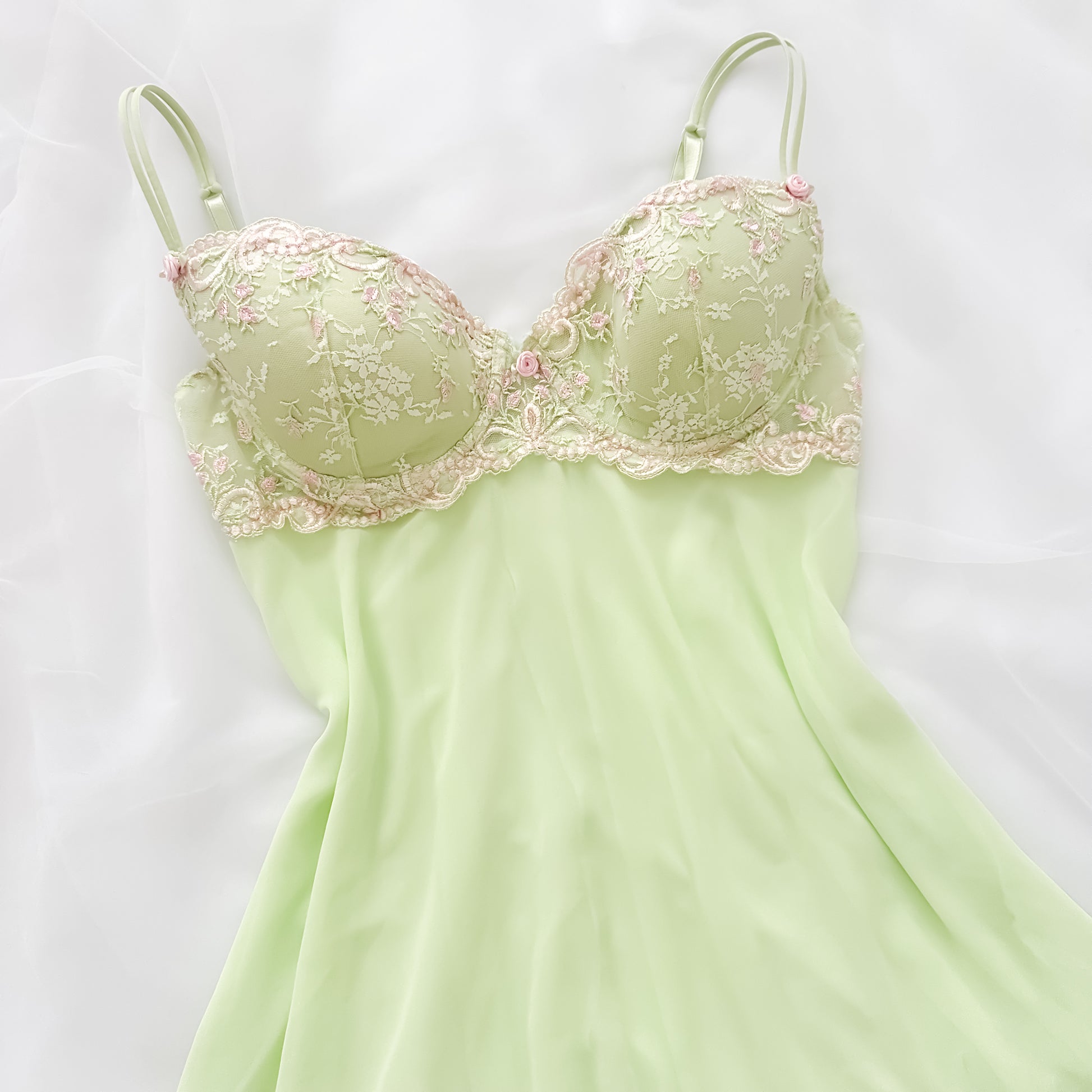 Delicate Green Floral Sheer Babydoll