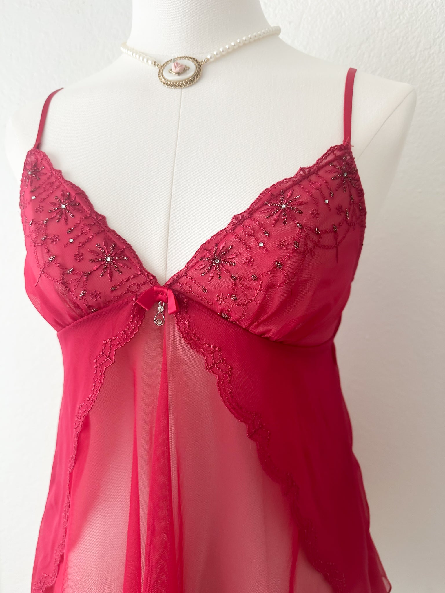 Red Beaded Lace Camisole